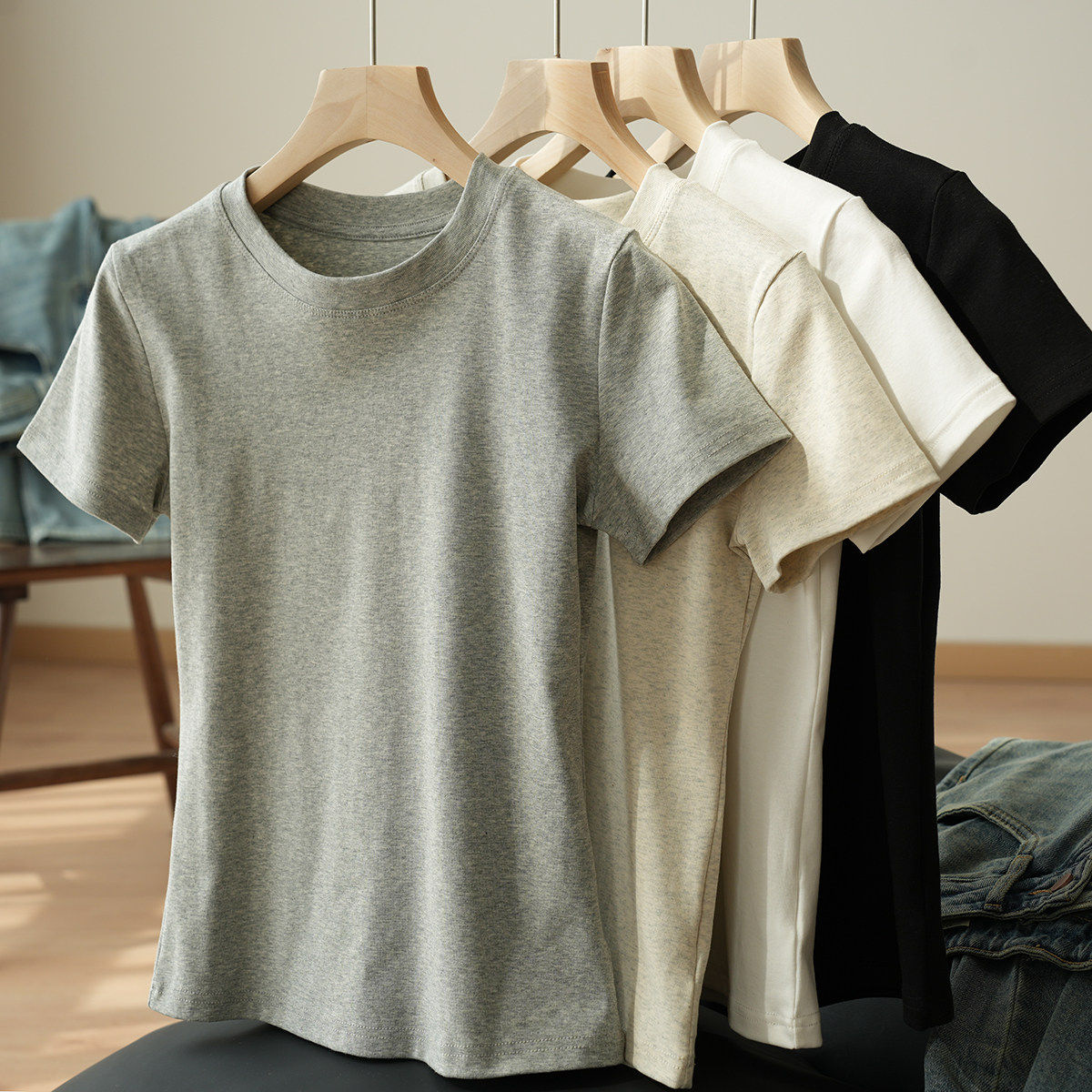 显瘦 修身 棉质圆领短袖 春夏款 女装 纯色百搭上衣 正肩女士T恤由