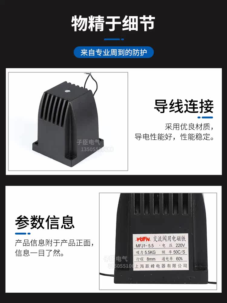 为您提供商品5.5交流干式 4.5 110V 7MM全铜线圈380 220 阀用电磁铁30N MFJ1的详细介绍,