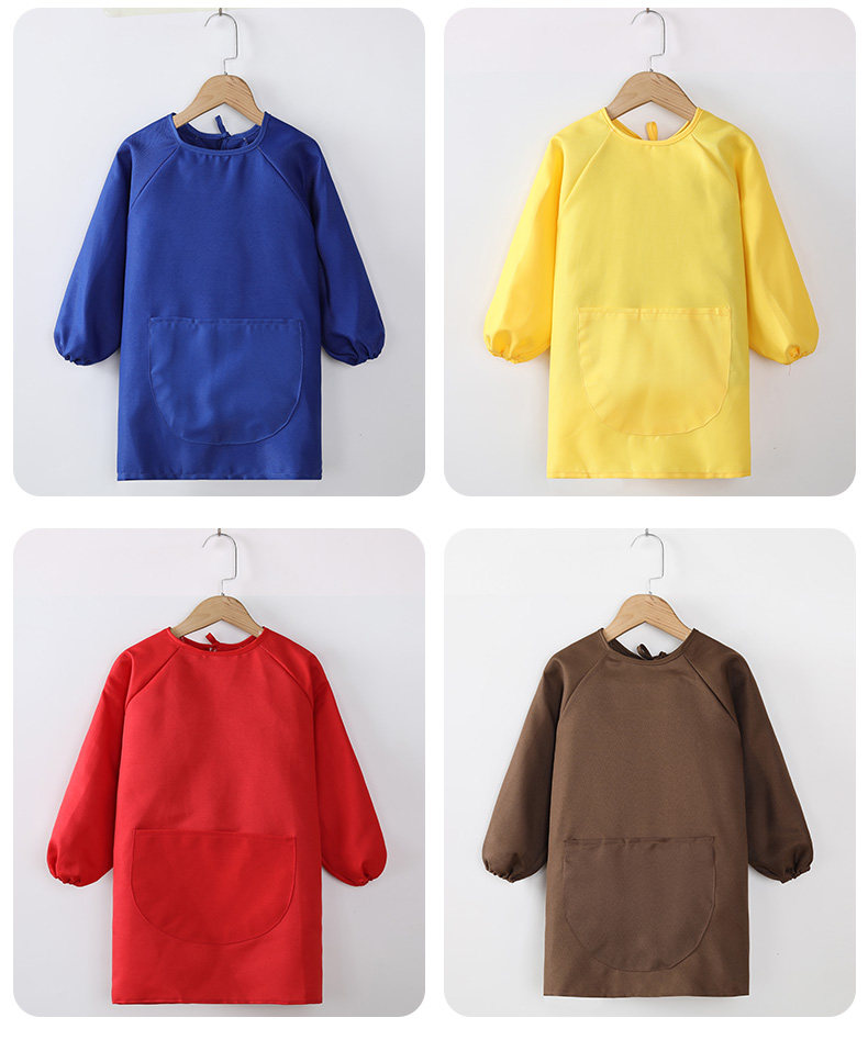 幼儿园美术绘画反穿衣宝宝吃饭围兜女宝围裙 儿童罩衣防水长袖