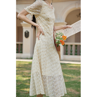 solighter法式 气质温柔收腰裙子 复古蕾丝连衣裙女夏2023早春新款