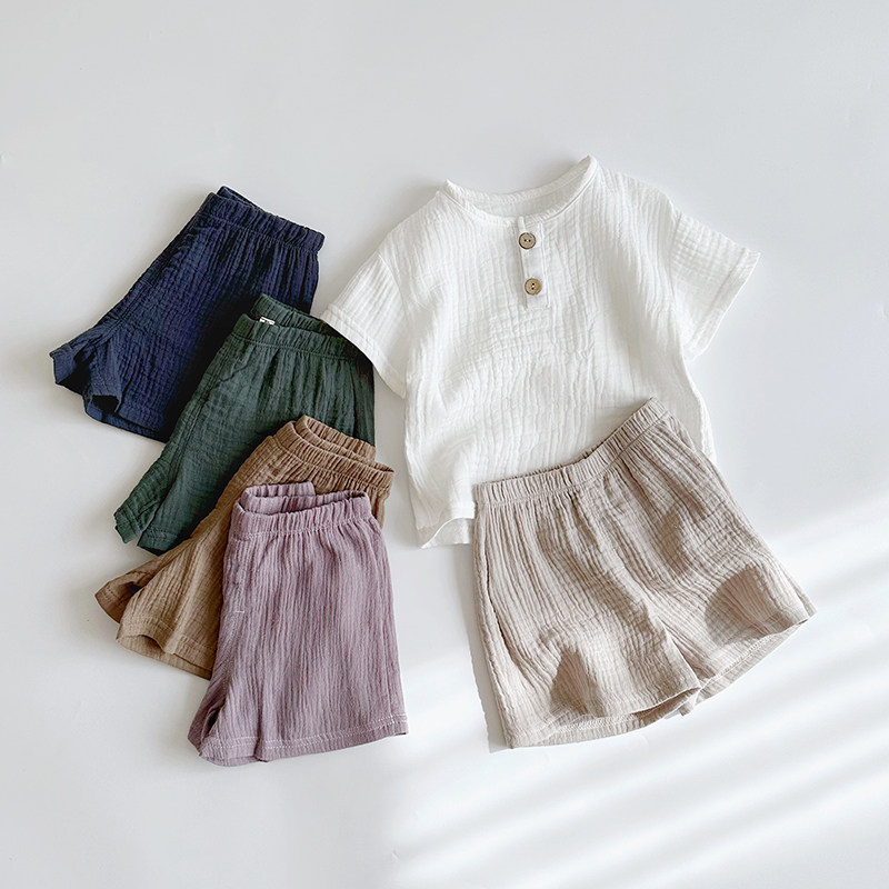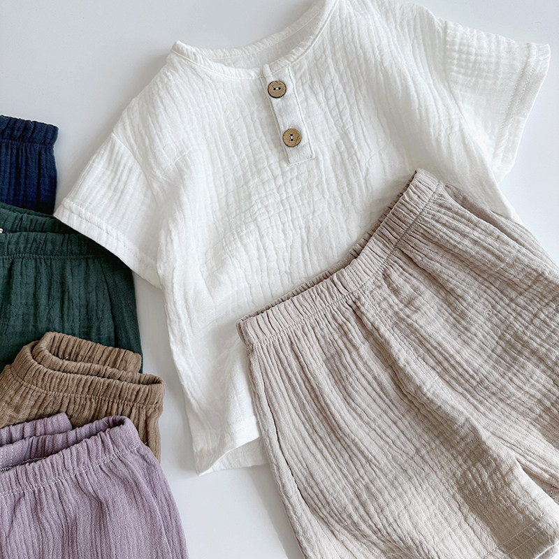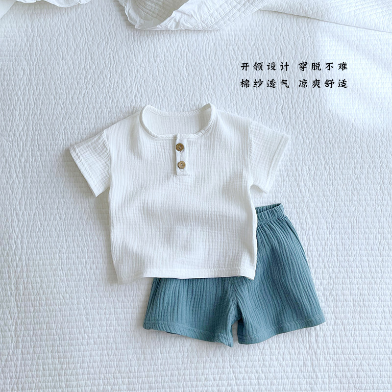 ins莫奈色韩系 宝宝夏季 开扣短袖 T恤洋气上衣宽松 凉爽透气不粘身
