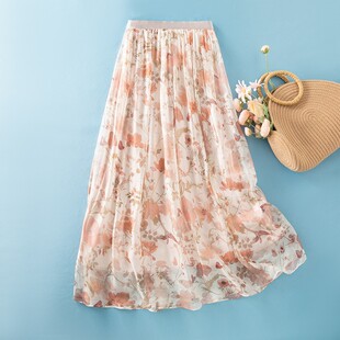 垂坠感法式 印花a字长裙 莫奈花园桑蚕丝真丝半身裙女2026新款 夏季