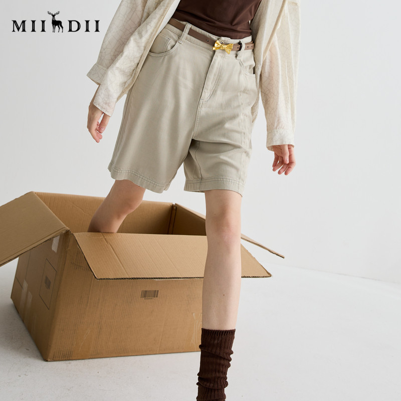 百搭日常莱赛尔丝滑合身牛仔短裤 252MK0687 女2025夏新品 谜底短裤由