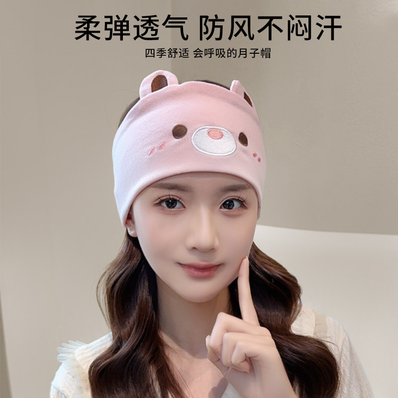 34月份月子帽春夏款 产妇帽防风头巾大头围帽子 外出月子发带女夏季由