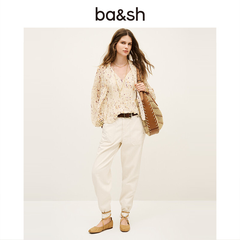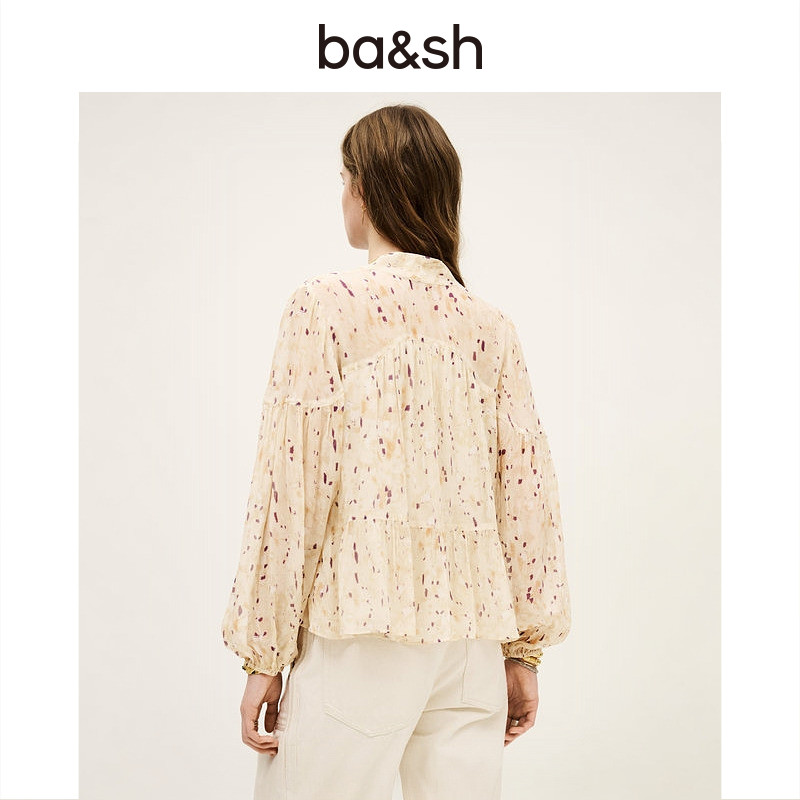 bash春季 衬衫 法式 度假风V领碎花衬衣女1H25KAMA 柔影星点飘带长袖由
