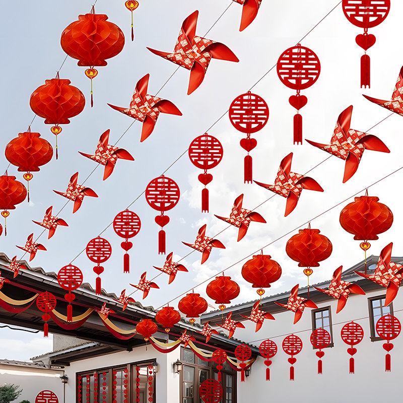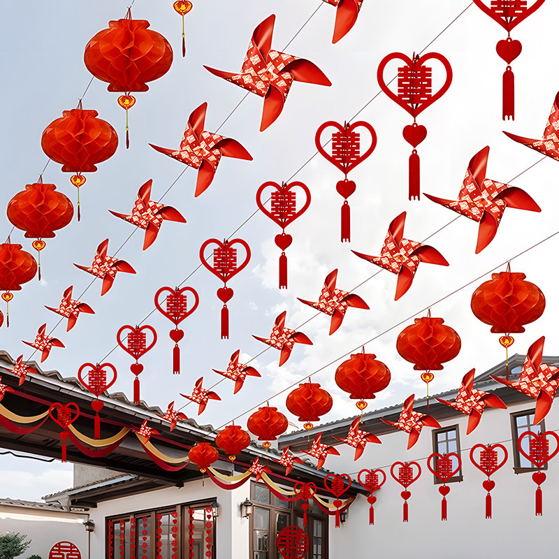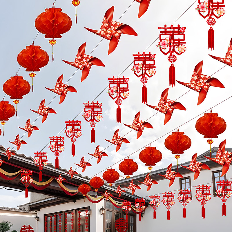 饰结婚彩旗灯笼风车婚礼农村庭院布置喜字拉花婚庆用品大全 院子装