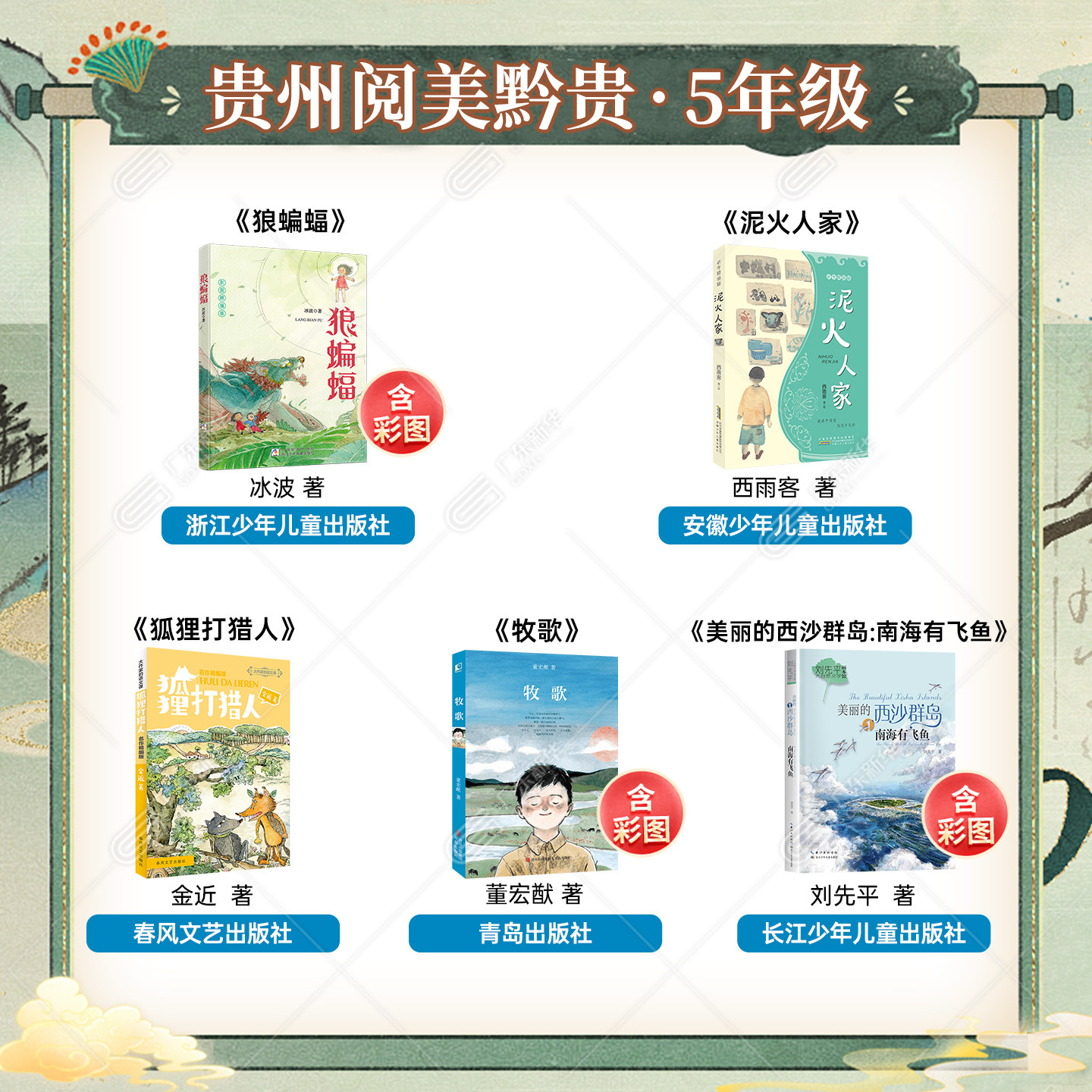 2026春贵州阅美黔贵五年级阅读书目 社泥火人家名作精编版 狐狸打猎人牧歌美丽 西沙群岛南海有飞鱼xy 狼蝙蝠浙江少年儿童出版由