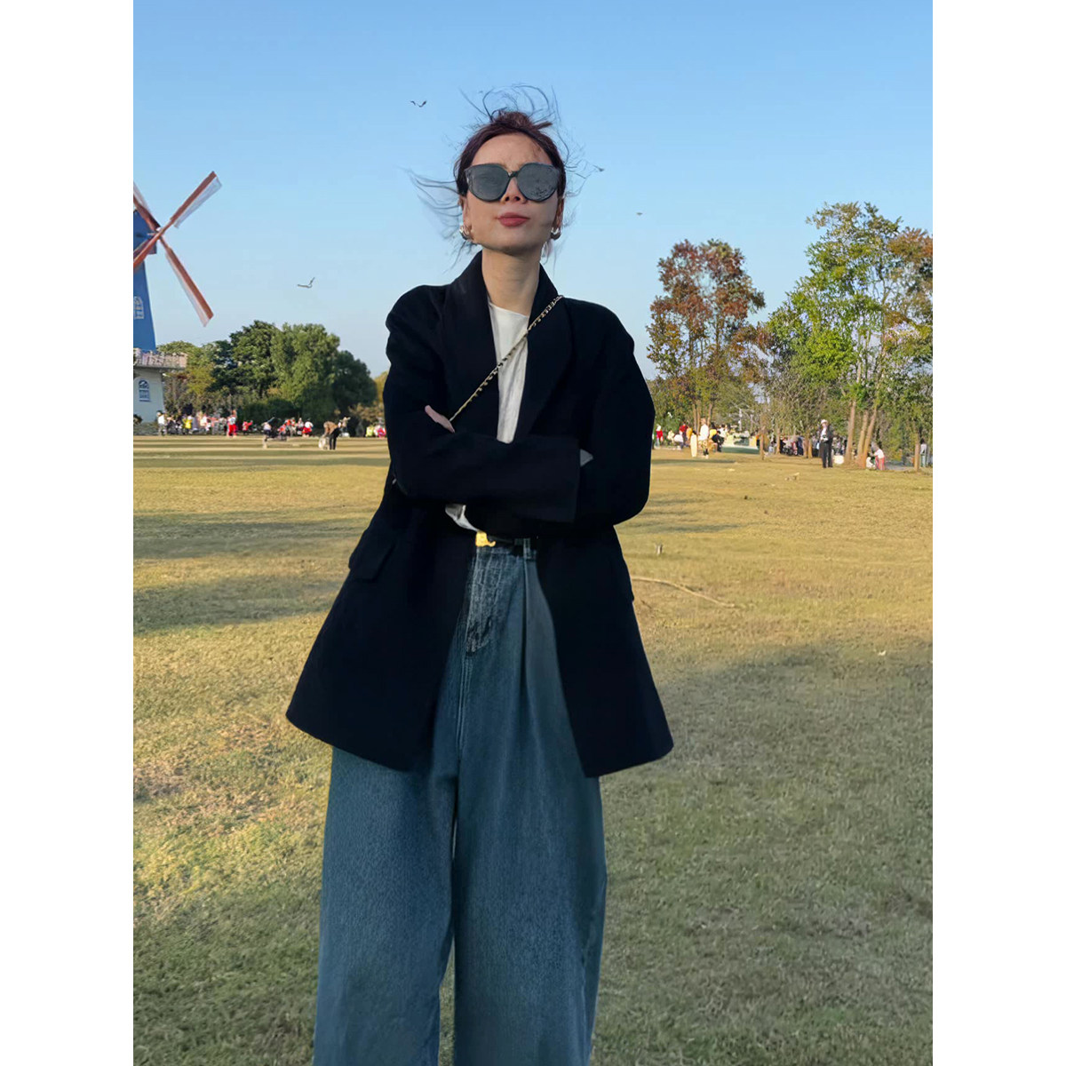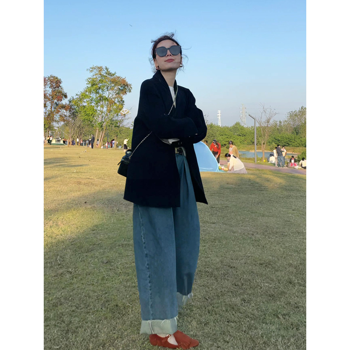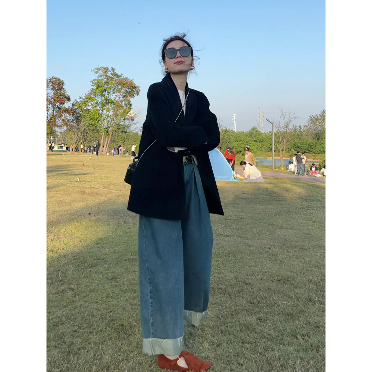 pusumede 复古阔腿牛仔裤 女宽松显瘦垂感直筒拖地长裤 摩登sense
