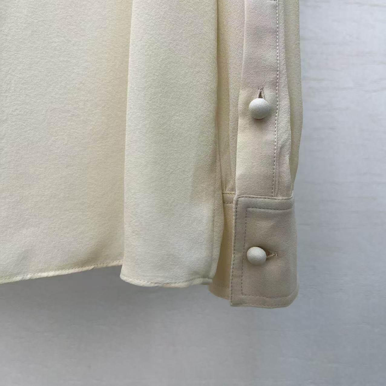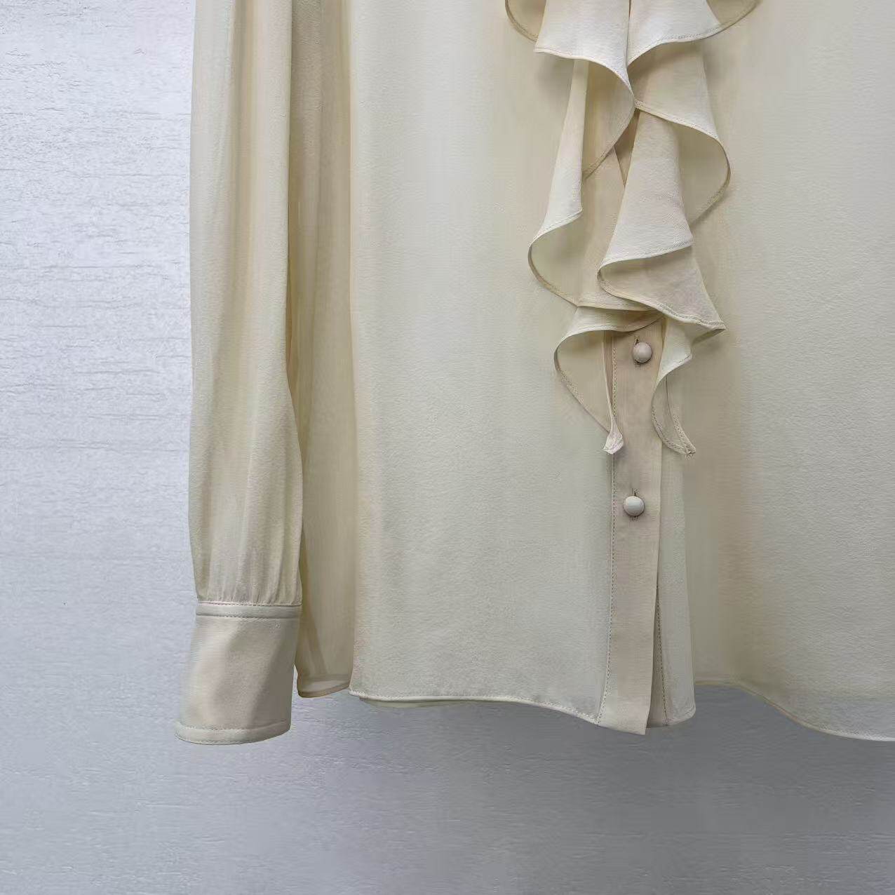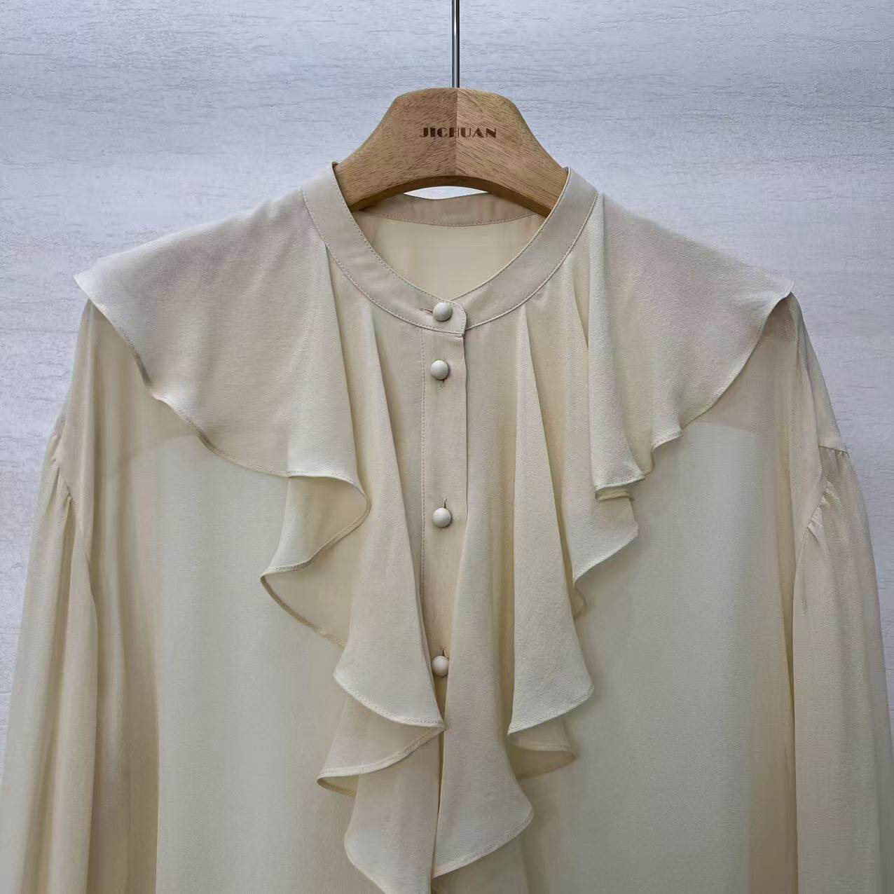 衬衫 女上衣 新温柔米杏色荷叶边领双绉真丝优雅通勤百搭长袖 春夏季