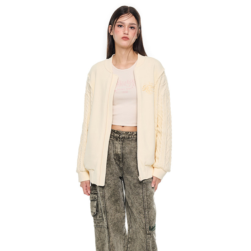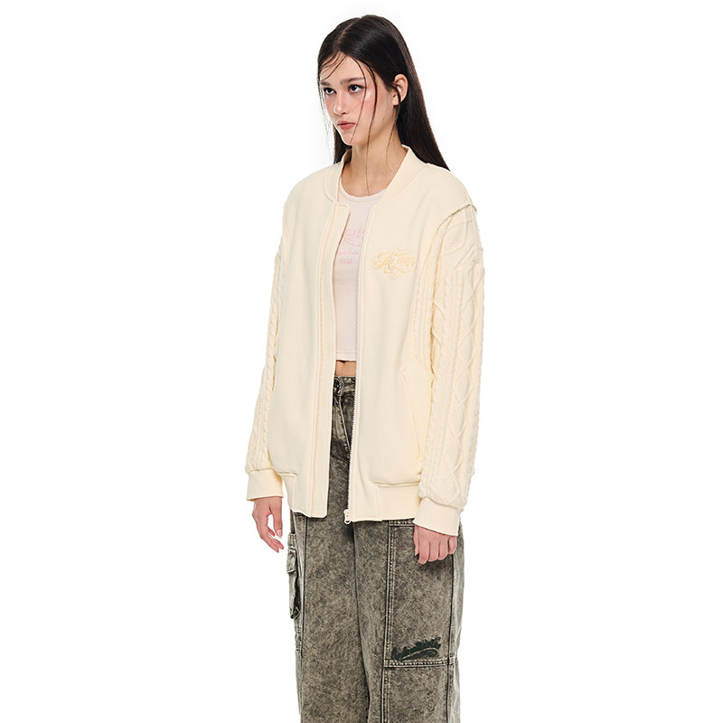 ANDREA 米色拼接针织卫衣开衫 立体刺绣毛针织衫 MARTIN秋冬新款