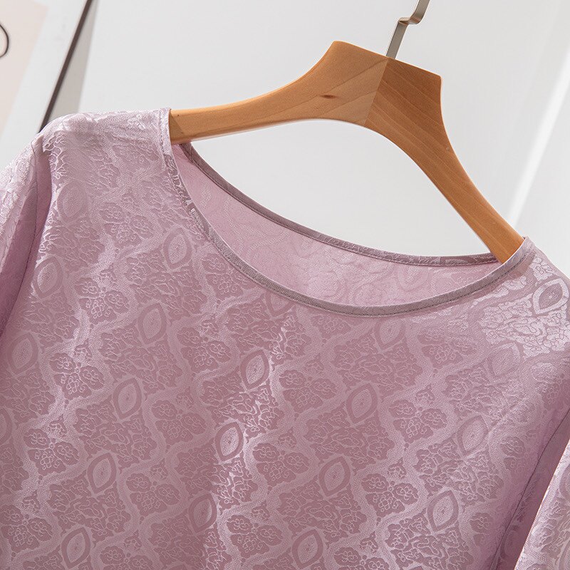 T恤女夏新款 显瘦休闲圆领宽松上衣 真丝8字萝灯笼七分大袖 浪漫法式