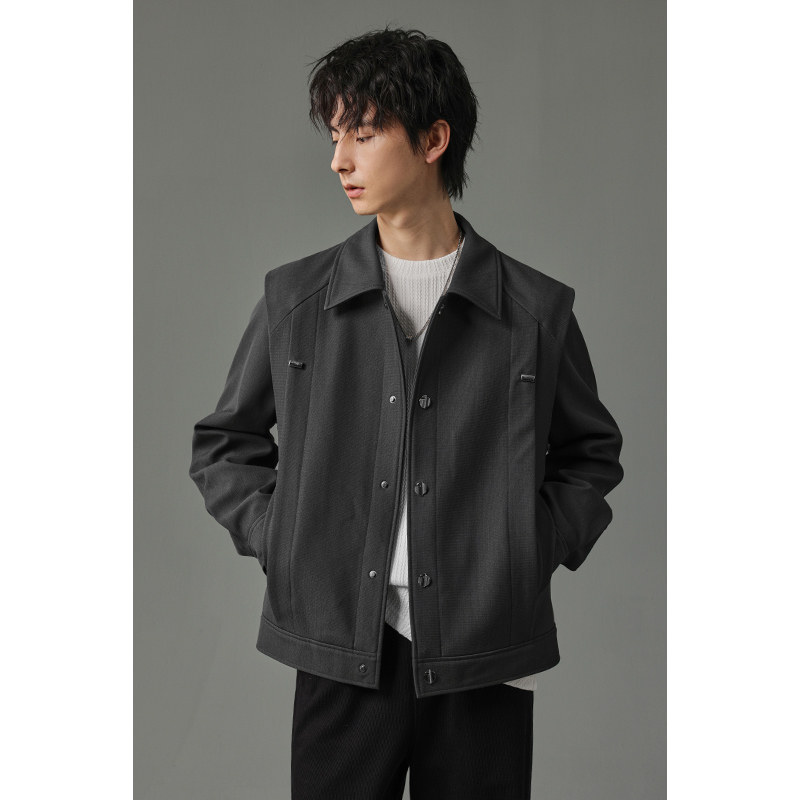 w2x2024秋季 假两件夹克外套男翻领设计感痞帅高级感休闲上衣 新款