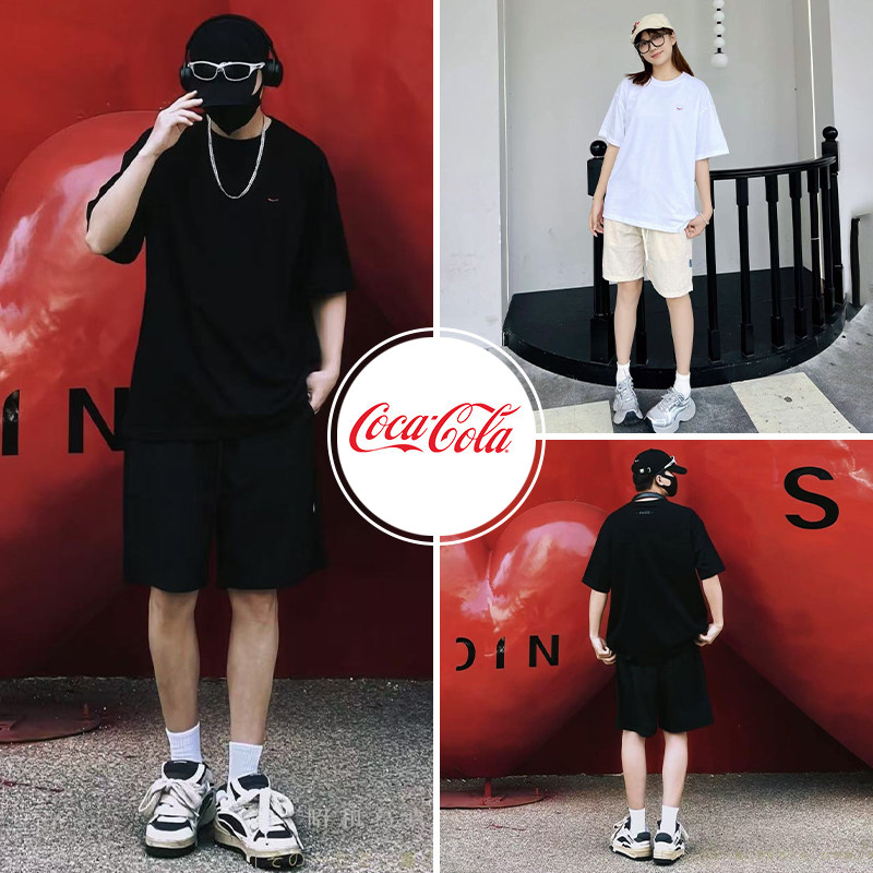 休闲运动套装 Coca T恤速干薄透气短裤 落肩短袖 Cola 可口可乐美式