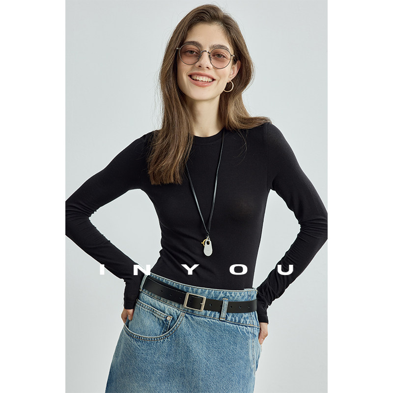 显瘦套头T恤打底衫 女 秋冬圆领上衣软糯亲肤0压呼吸感修身 因由由