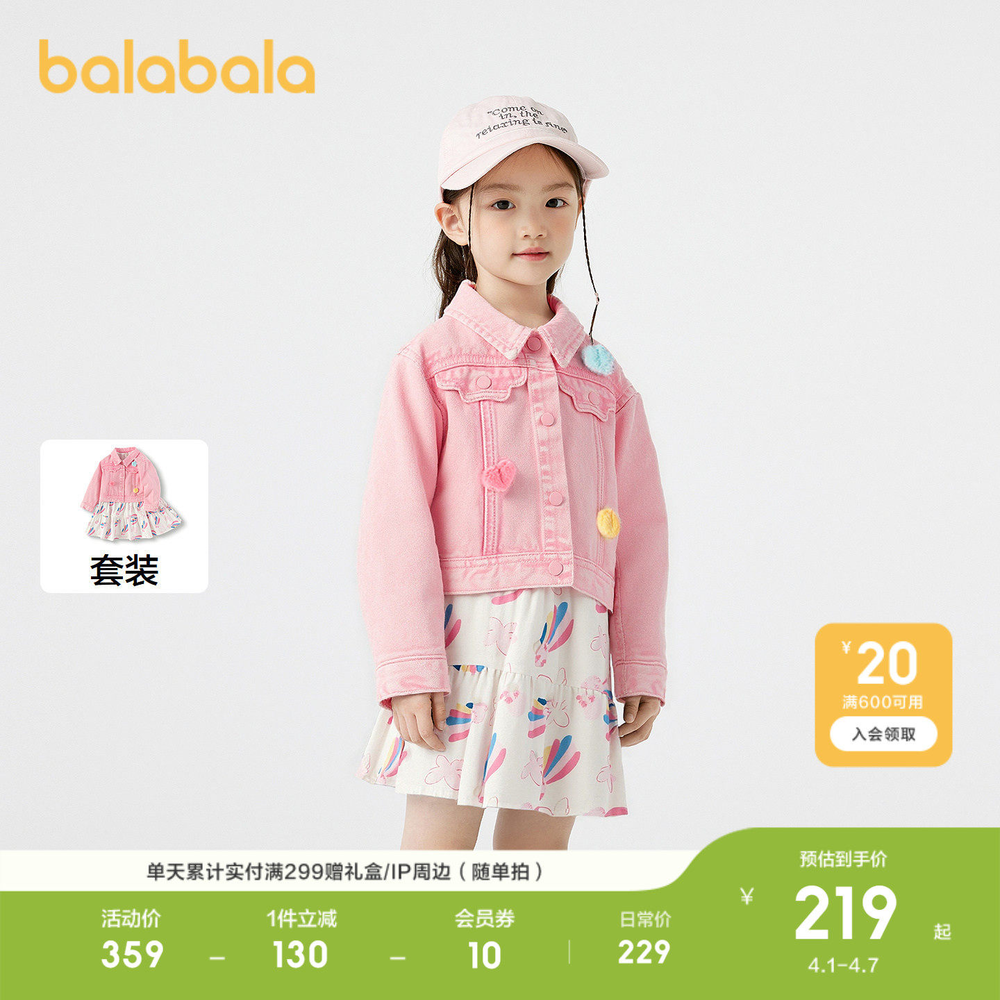 为您提供商品童装 儿童甜美 女童短牛仔两件套2026春装 巴拉巴拉宝宝连衣裙子套装的详细介绍,