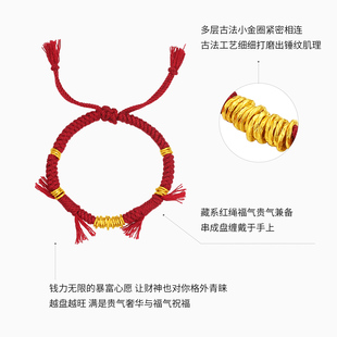 潮宏基盘缠金黄金手绳足金手链藏式 红绳盘缠金转运计价生日礼物由