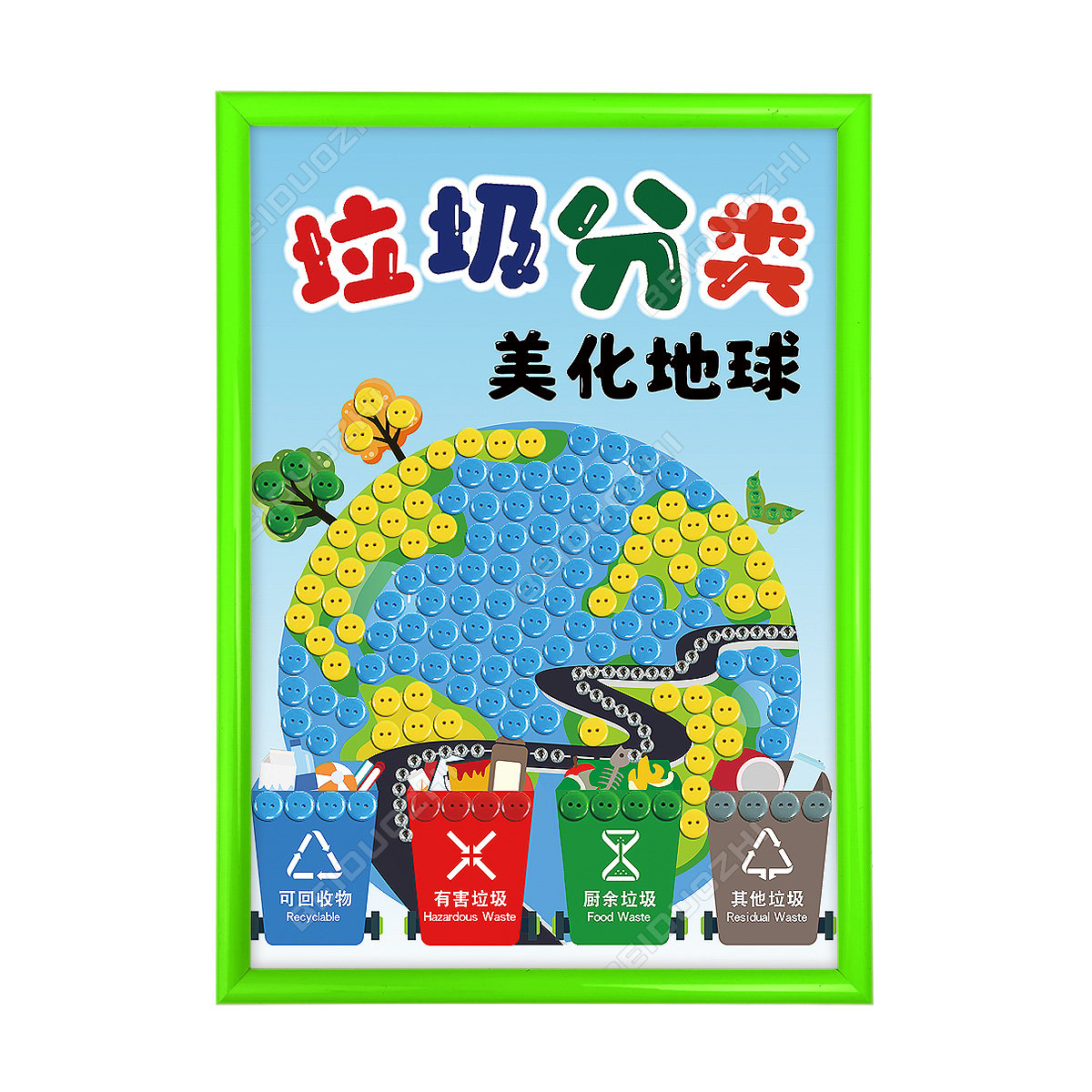 环保日保护环境美化地球儿童垃圾分类创意手工diy制作纽扣粘贴画