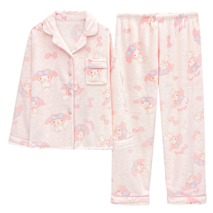 加厚绒保暖可爱日系卡通粉色家居服套装 秋冬天 冬季 珊瑚绒睡衣女款