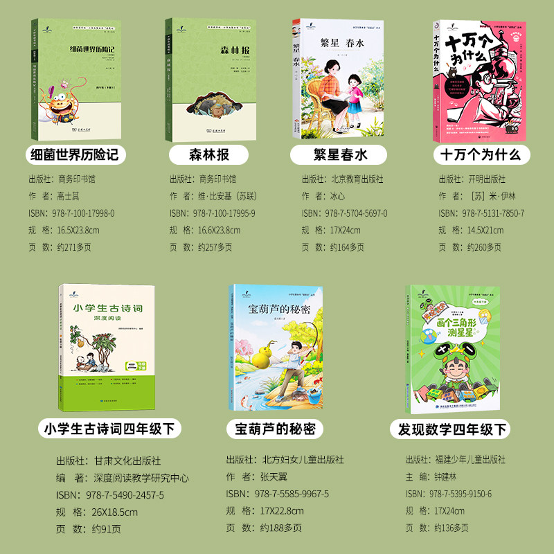 秘密繁星春水森林报细菌世界历险记十万个为什么画个三角形测星星小学生古诗词深度阅读4年 26春读思达整本书四年级上下册宝葫芦由