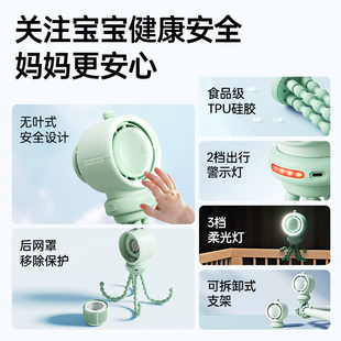 户外桌面儿童宝宝手推车婴儿床防夹手轻音 几素高速节能婴儿车小风扇八爪鱼无叶可摇头空气净化充电夹子便携式