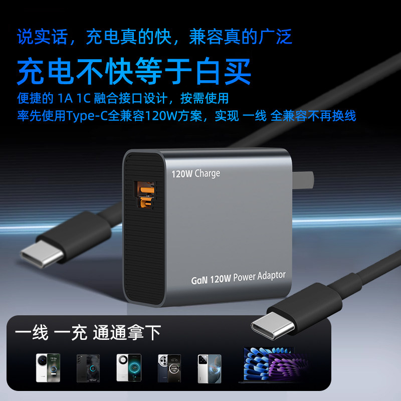 LDZM120W氮化镓充电器适用vivoX200iqoo13华为mate60Pura70荣耀100oppoX7一加ace5小米15红米K80苹果快充插头