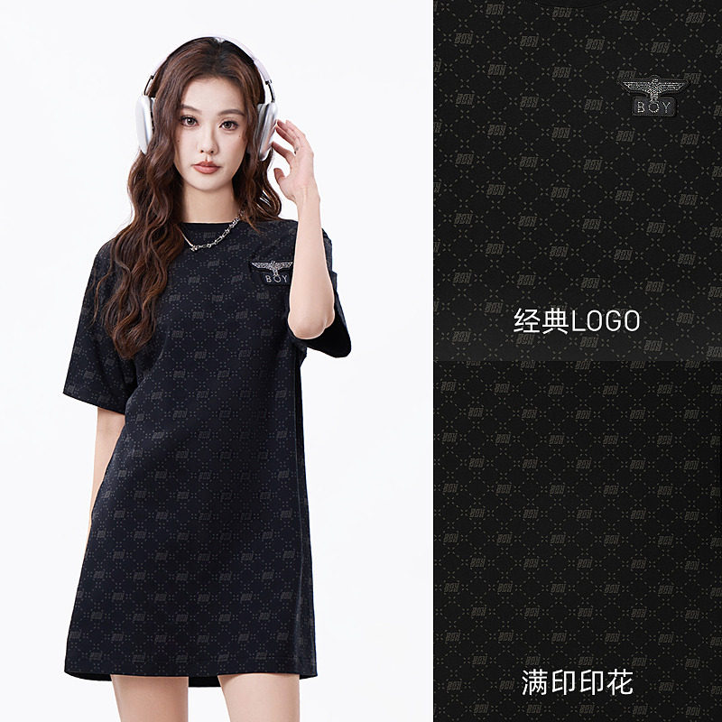 BOYLONDON春夏女款 T恤裙满印潮牌直筒连衣裙W17906 沁粉佳人