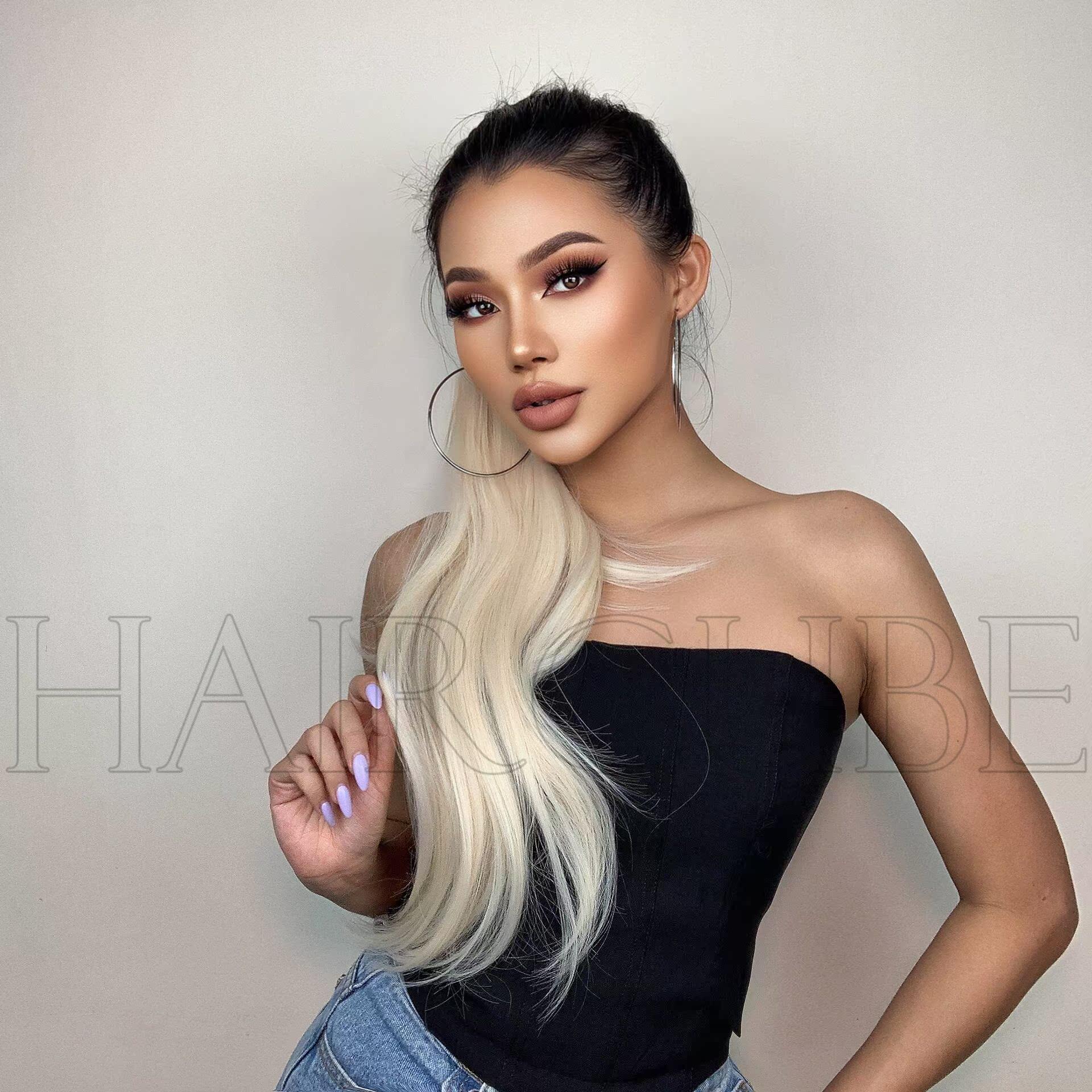 wigs 长款 hair Ponytail Long 白金色抓夹马尾假发Gold platinum