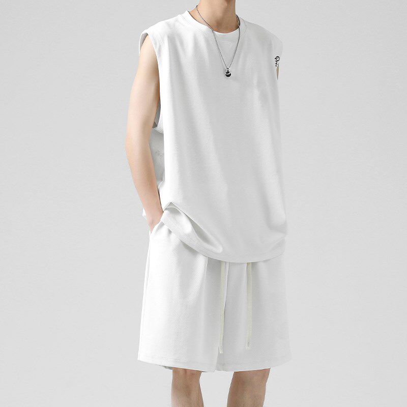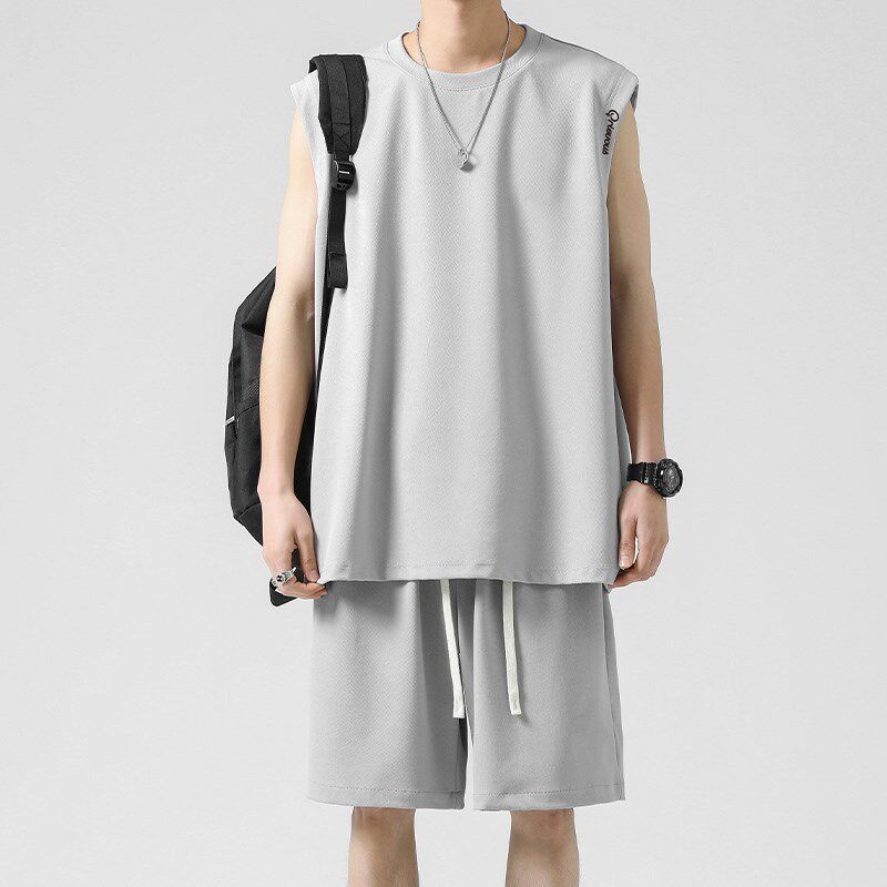 短裤 字母刺绣无袖 t恤男夏季 冰丝速干篮球运动服短袖 休闲背心套装