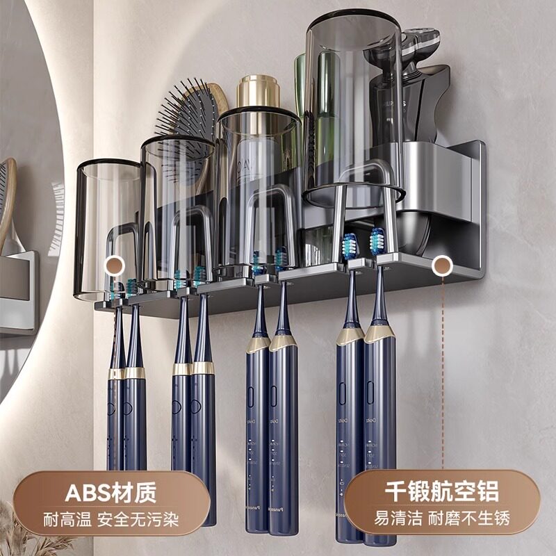 免打孔卫生间牙具座牙膏收纳浴室 牙刷牙杯壁挂置物架电动牙刷套装
