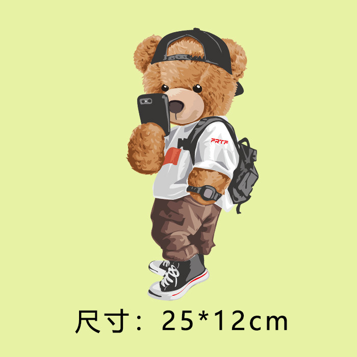 过粉胶印烫画贴 网红潮牌字母卡通布偶熊图案热转印衣服辅料贴柯式由