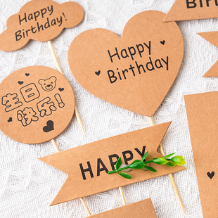 饰牛皮纸生日快乐插牌森系派对甜品台插件 网红ins风烘焙蛋糕装由