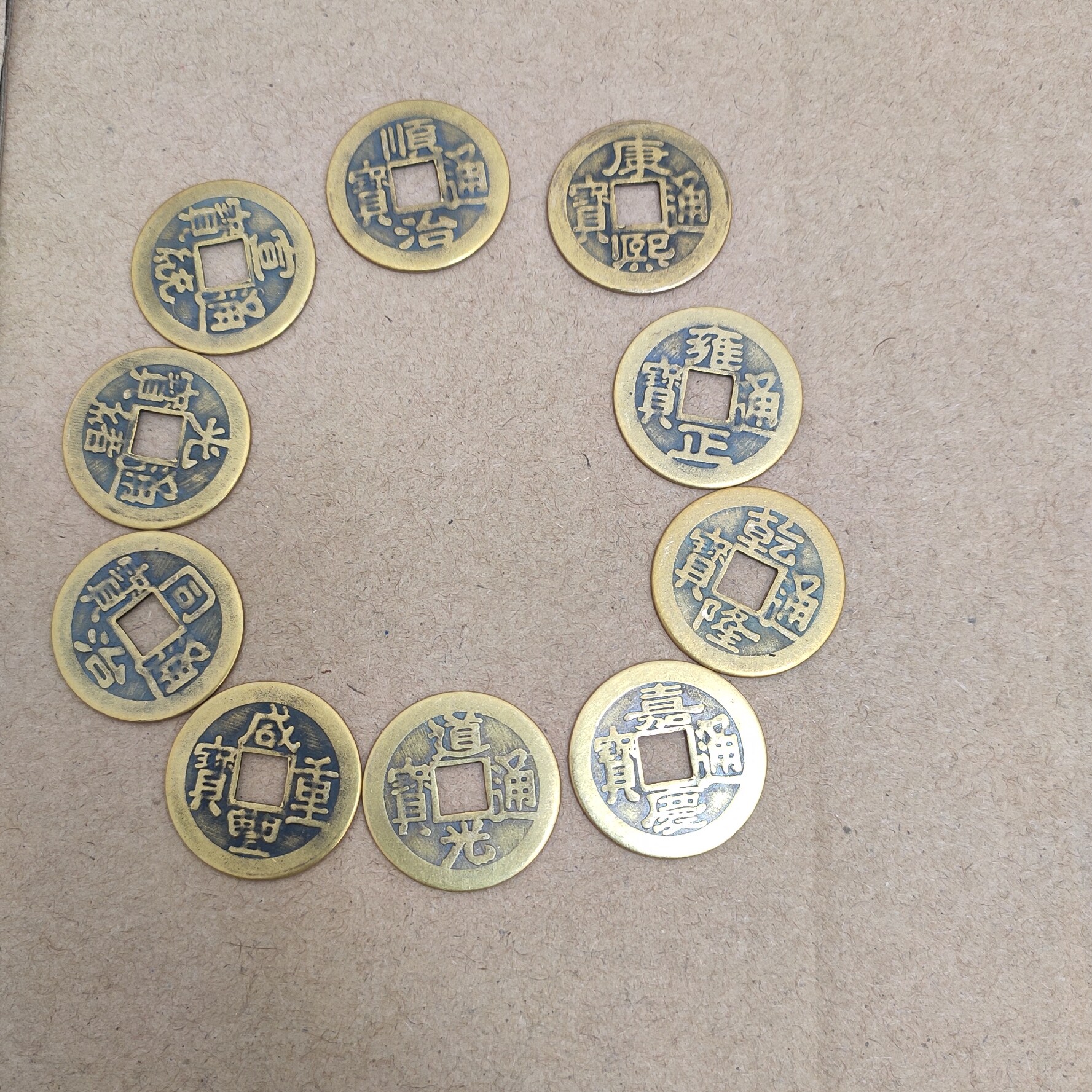 为您提供商品100个铜钱五帝钱黑色黄铜顺治康熙雍正乾隆嘉庆仿古六帝十帝钱币的详细介绍,