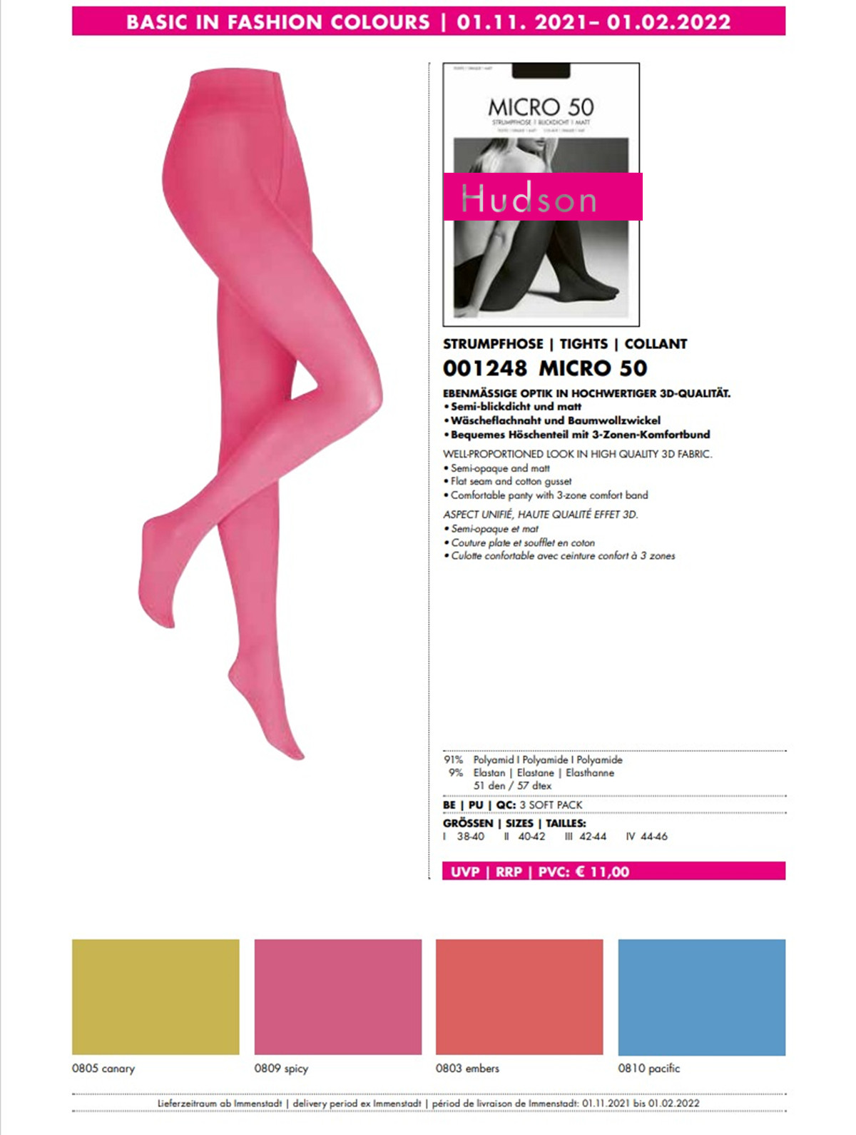 为您提供商品Micro 2024春夏限量色德国Kunert子品牌Hudson蓝 紫 绿 袜 50D连裤的详细介绍,