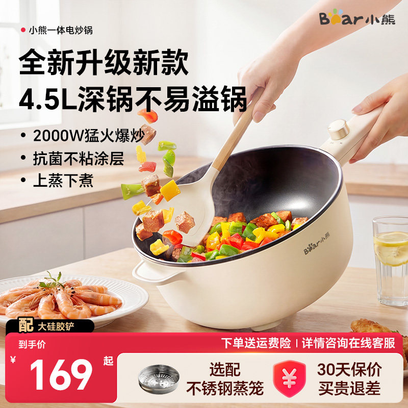为您提供商品不粘锅家用多功能电煮锅大功率不粘电火锅 小熊电炒锅炒菜锅一体式的详细介绍,