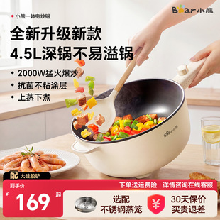 家用多功能电热锅不粘锅炒菜锅烹饪机电火锅煮锅 小熊电炒锅一体式