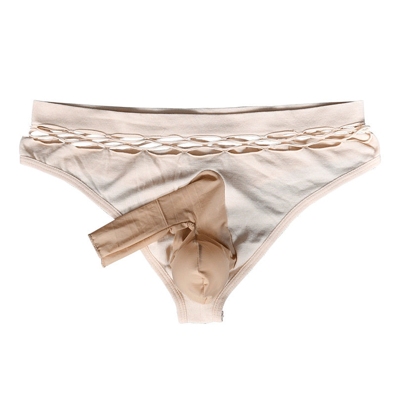 跨境欧美男士 纯棉内裤 枪弹分离jj套丝袜性感外贸三角裤 镂空丁字裤