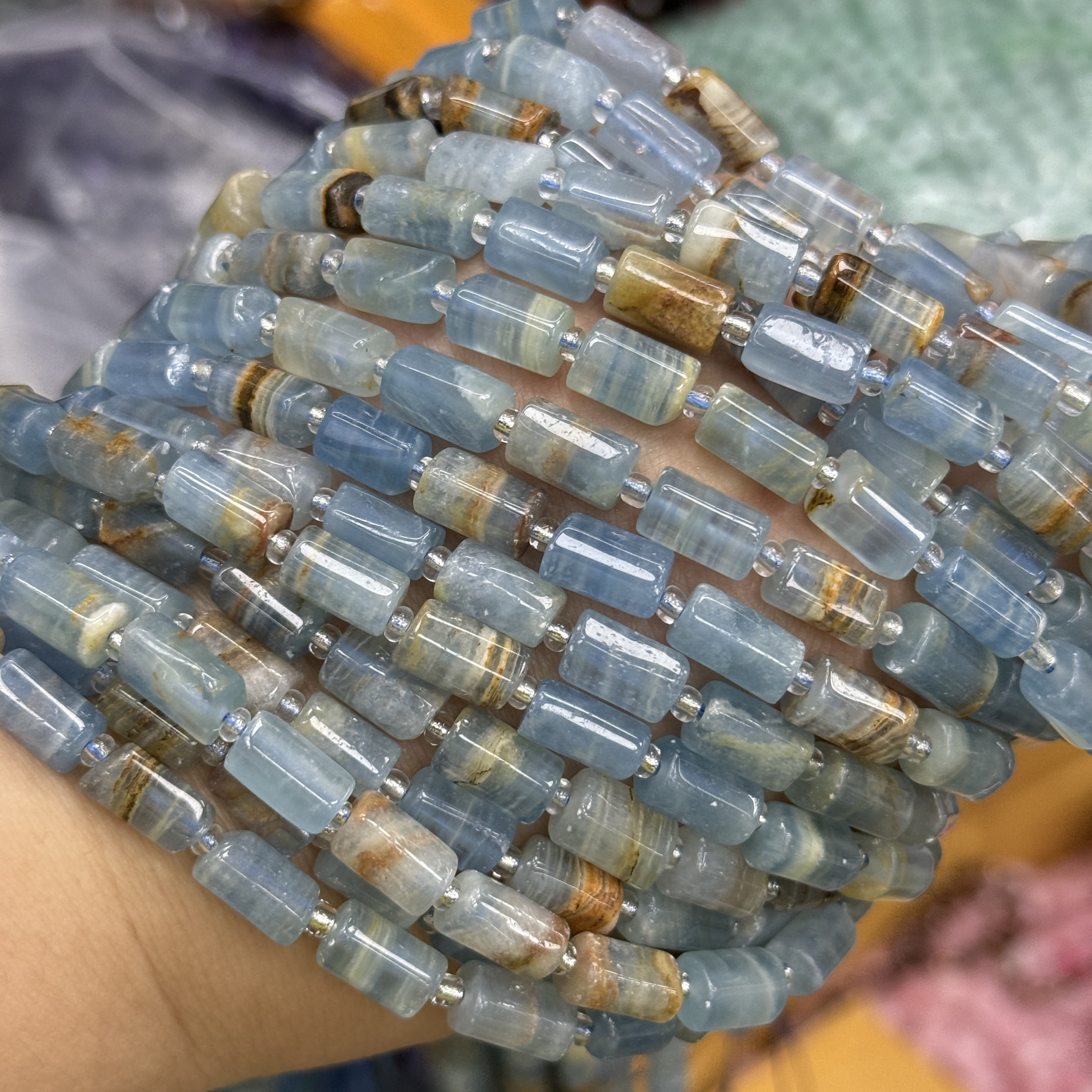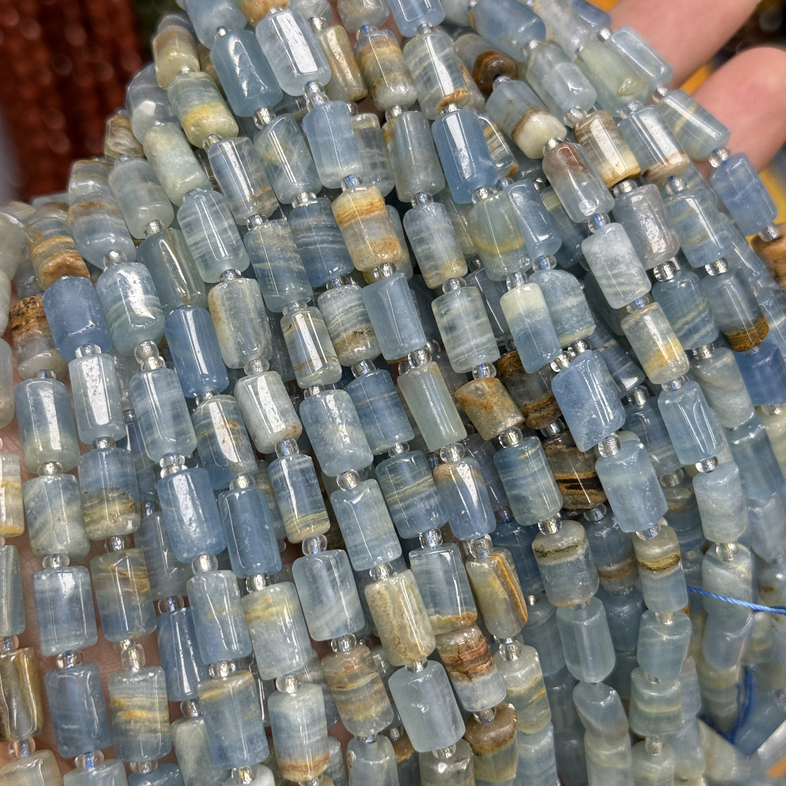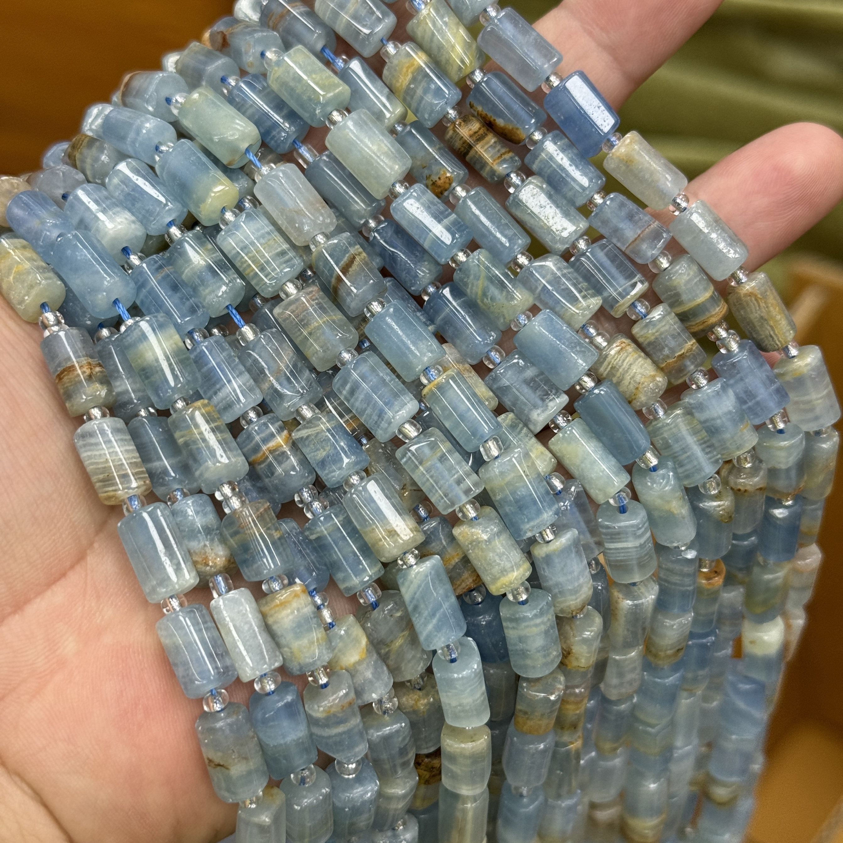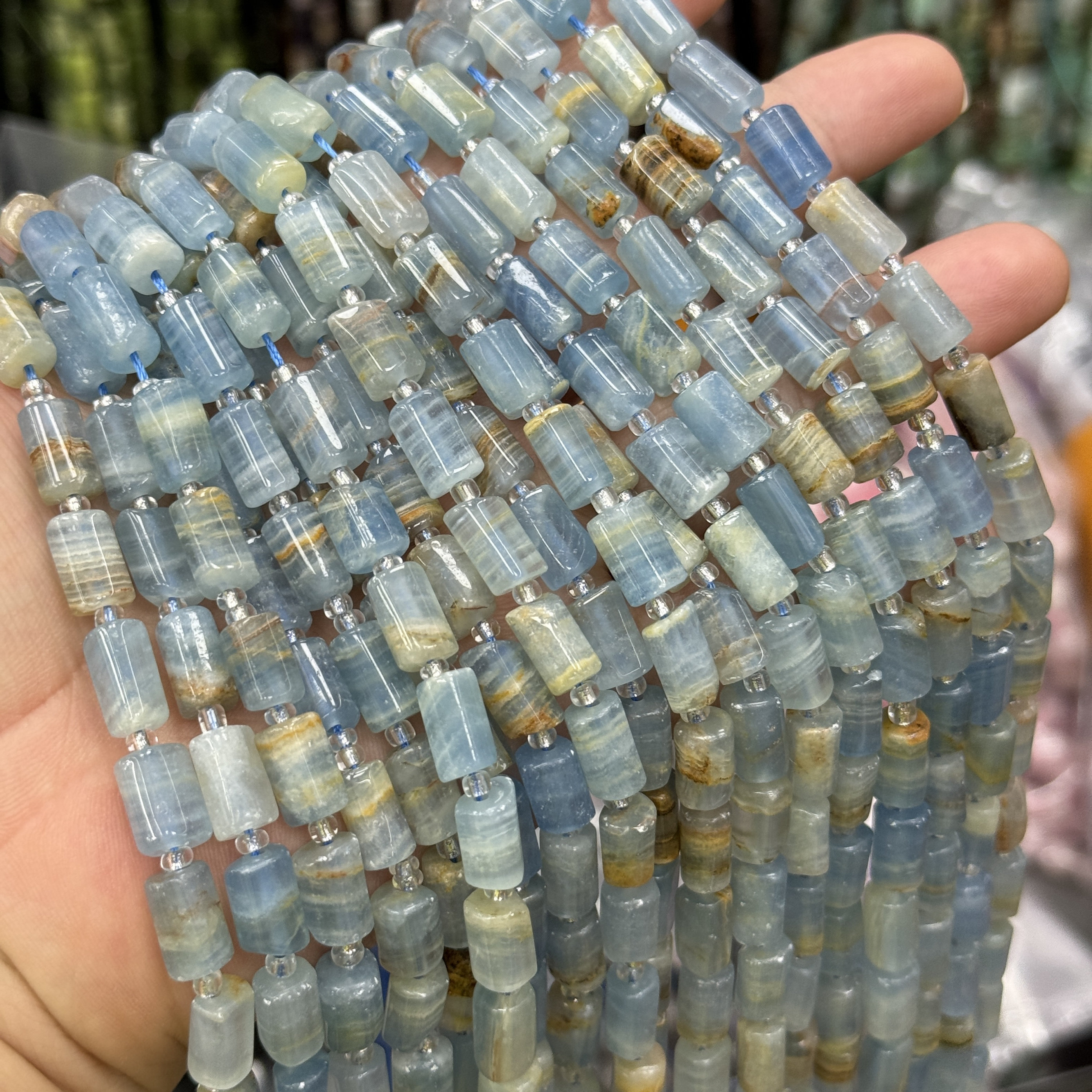 10mm天然石蓝色方解石圆柱管桶珠散珠水晶diy串珠饰品配件项链由