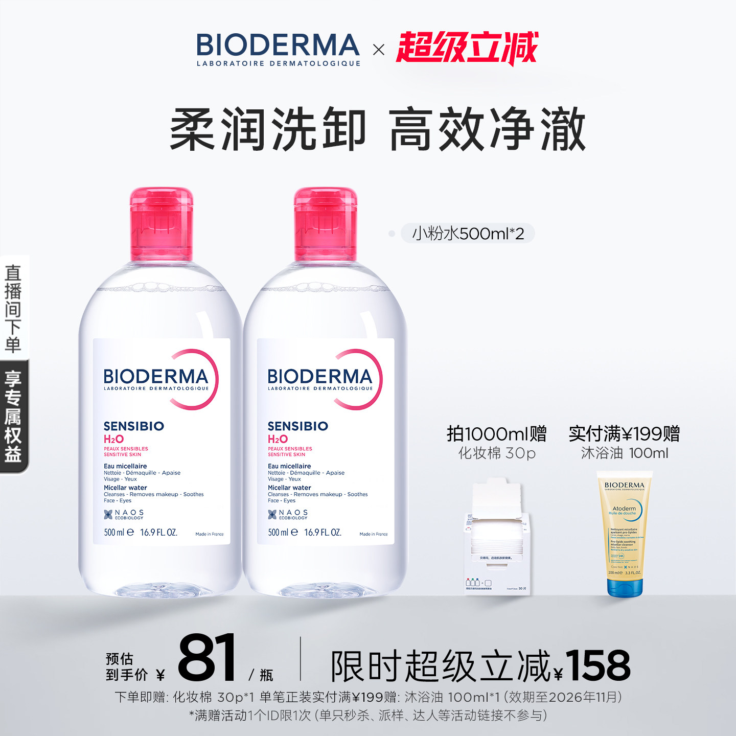 贝德玛粉水敏感肌温和洗卸不伤肤成分精简水润清爽家用
