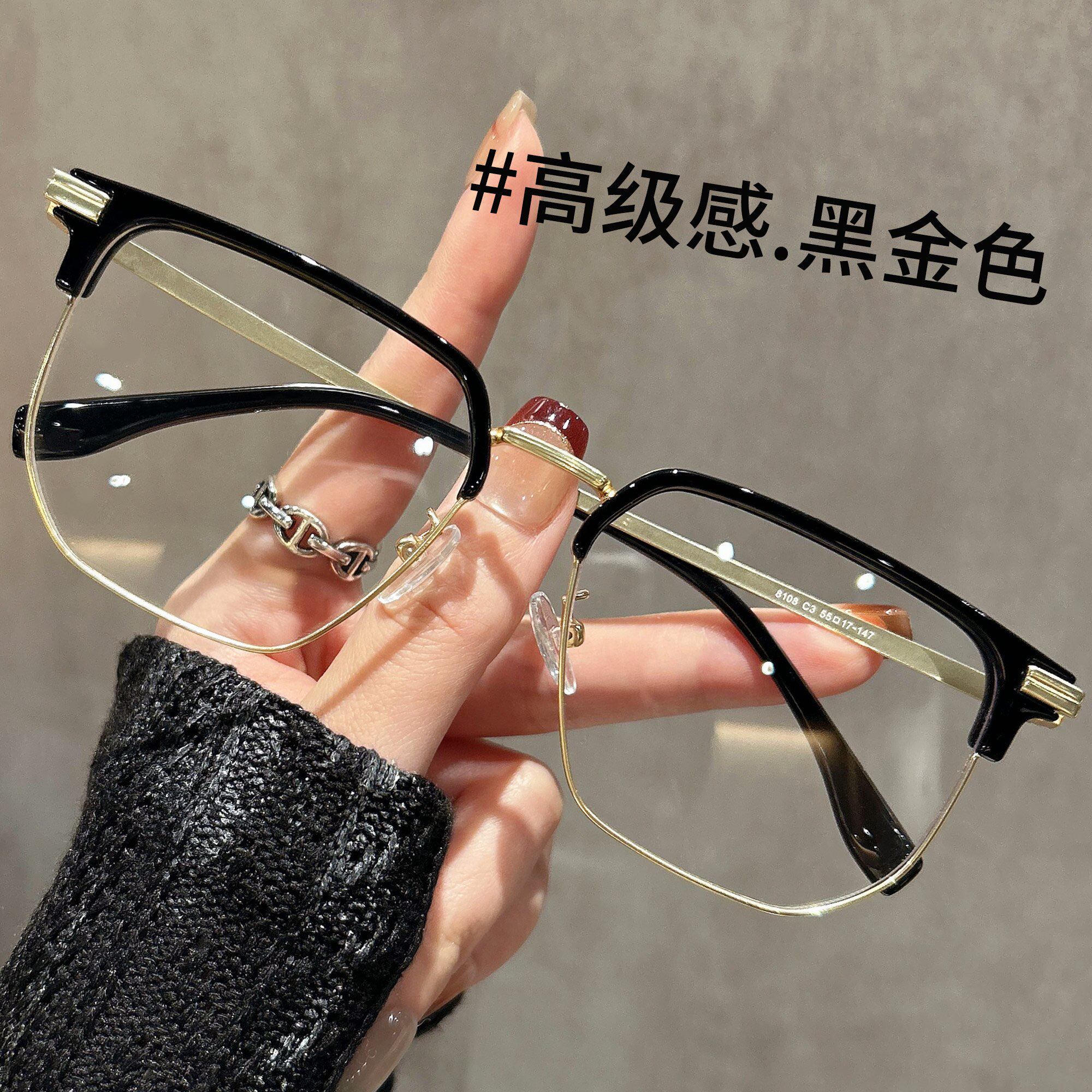斯文半框眼镜男款 黑框眼睛镜框星 近视度数可配大脸素颜防蓝光男士