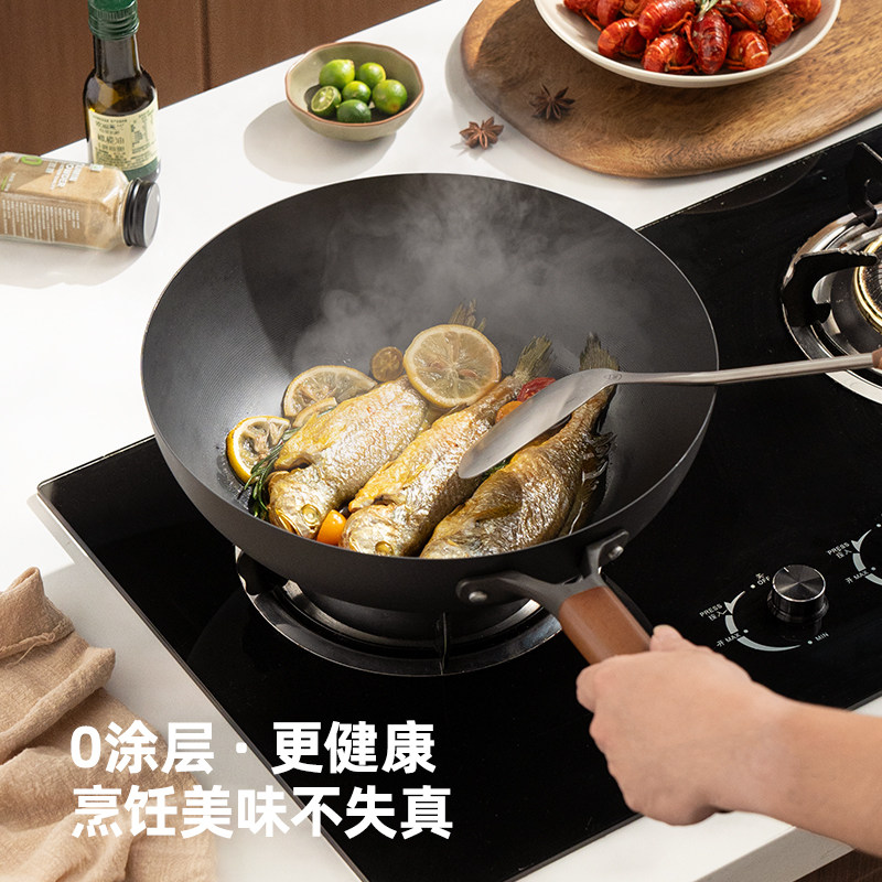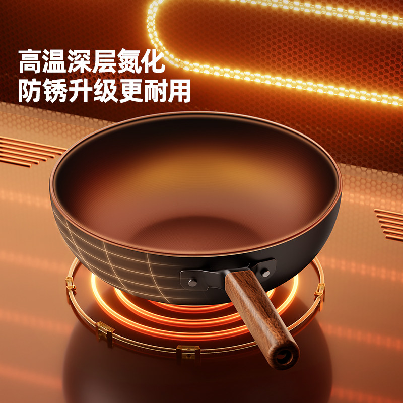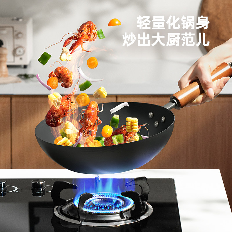 九阳铁锅无涂层炒锅家用炒菜锅不易粘锅电磁炉专用燃气灶旗舰店炊