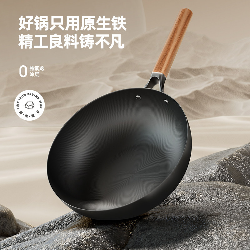 炒锅家用不粘锅无涂层燃气灶适用 章丘炒菜锅传统铁锅官方旗舰老式