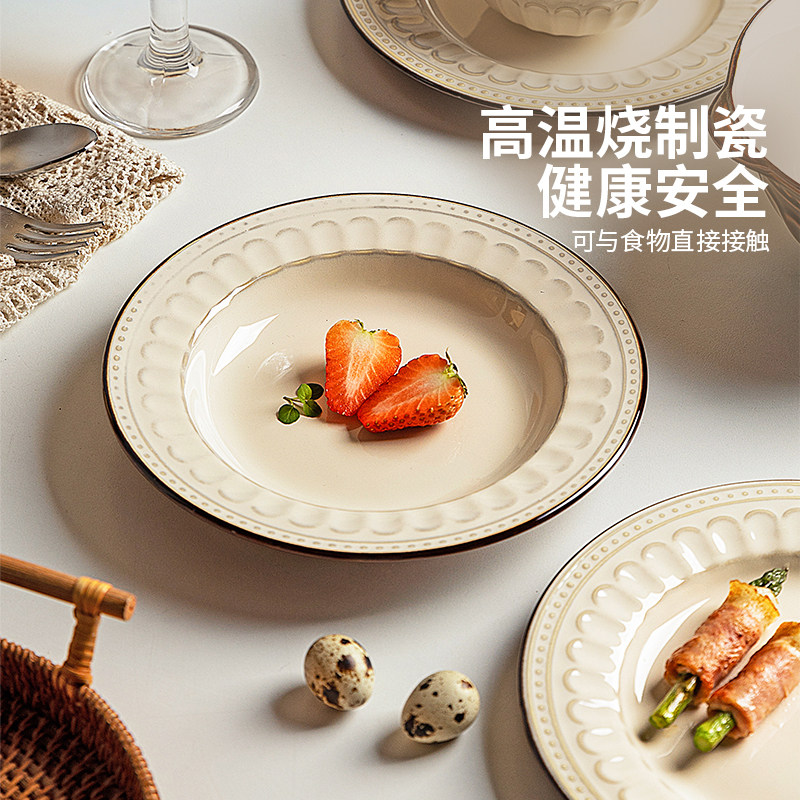 法式 轻奢罗马浮雕白色陶瓷家用餐厅面碗米饭碗 外贸原单 安木良品