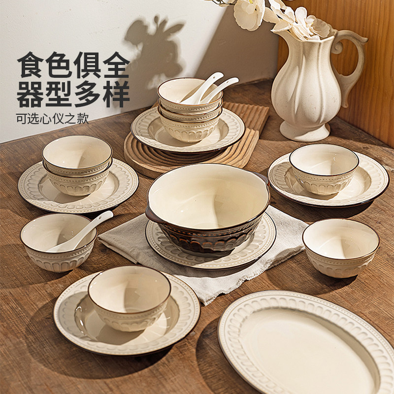 摩登主妇餐具法式 家用 碗具高级感乔迁新居新婚礼物碗碟筷碗盘套装