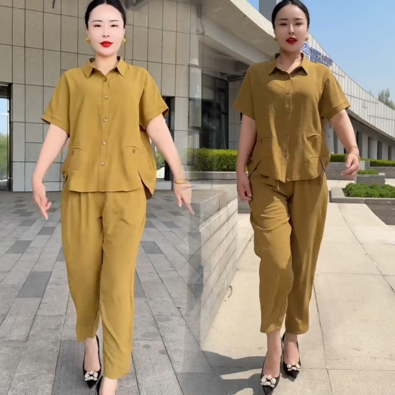 为您提供商品洋气减龄显瘦遮肉纯色短袖 2025夏季 新款 时尚 两件套休闲简约套装的详细介绍,