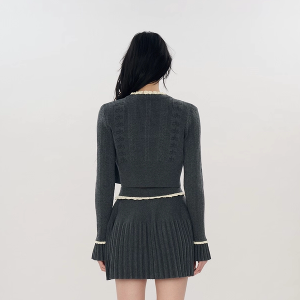 花边针织开衫 外套上衣 甜美拼接娃娃毛衣秋冬新款 蕾丝温柔针织衫