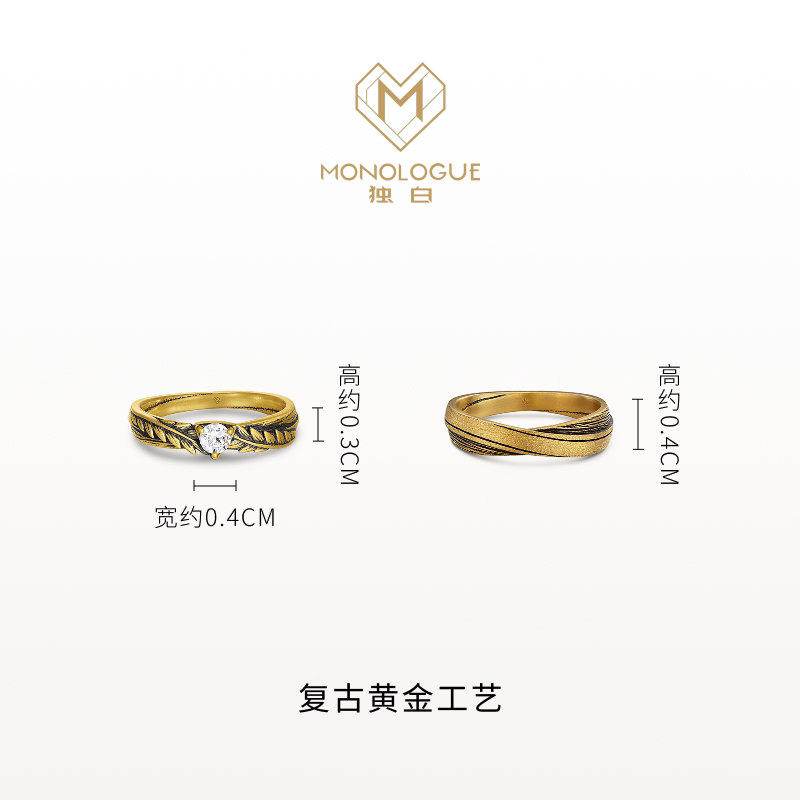 为您提供商品MONOLOGUE独白欧罗巴狂想拉丝月桂复古黄金钻石对戒礼生日礼物的详细介绍,
