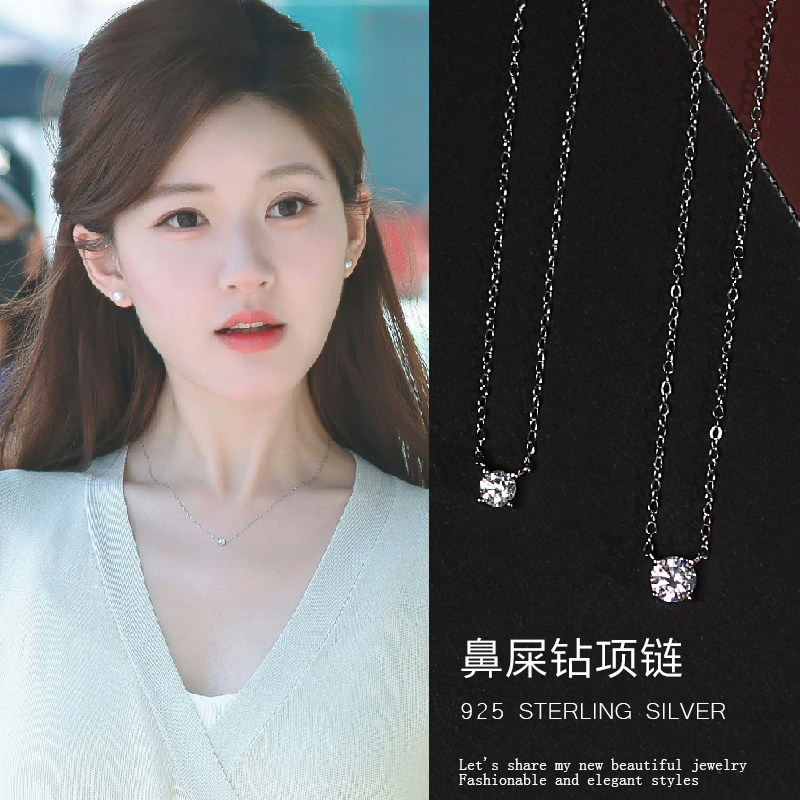 露丝同款 回馈 爆闪 s925纯银不掉色 四爪单钻锆石 鼻屎钻项链