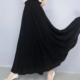 高腰大码 新款 夏季 雪纺纱半身裙白色女中长款 大摆裙 纯色a字裙修身由