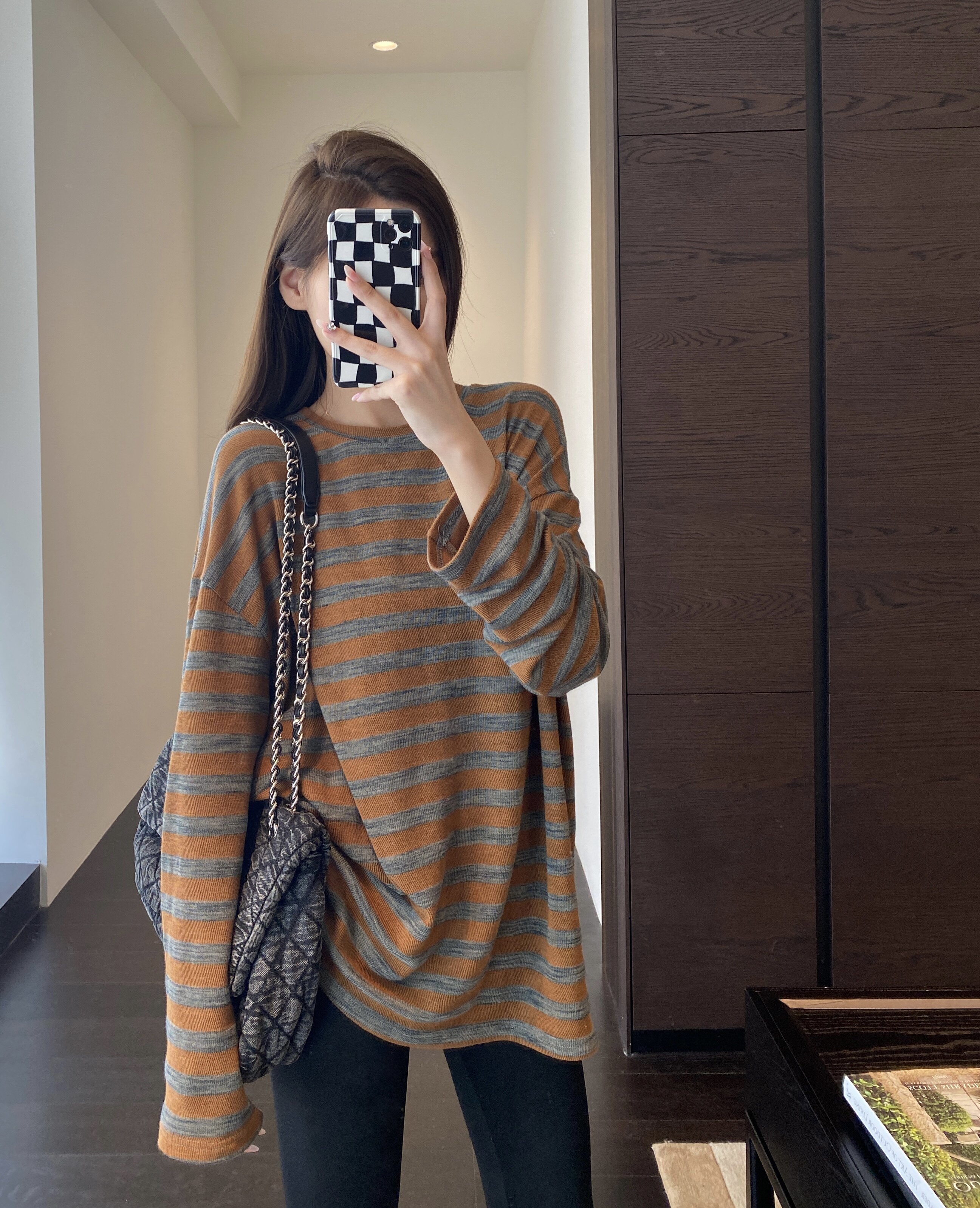 oversize慵懒宽松条纹打底衫 AMR 藏肉不挑人 女2023秋冬新款由