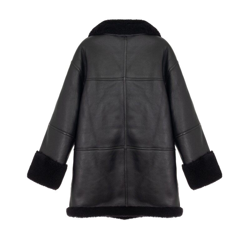 TOTEME春季 女士中长款 黑色皮草外套 银泰百货精品301574 新款